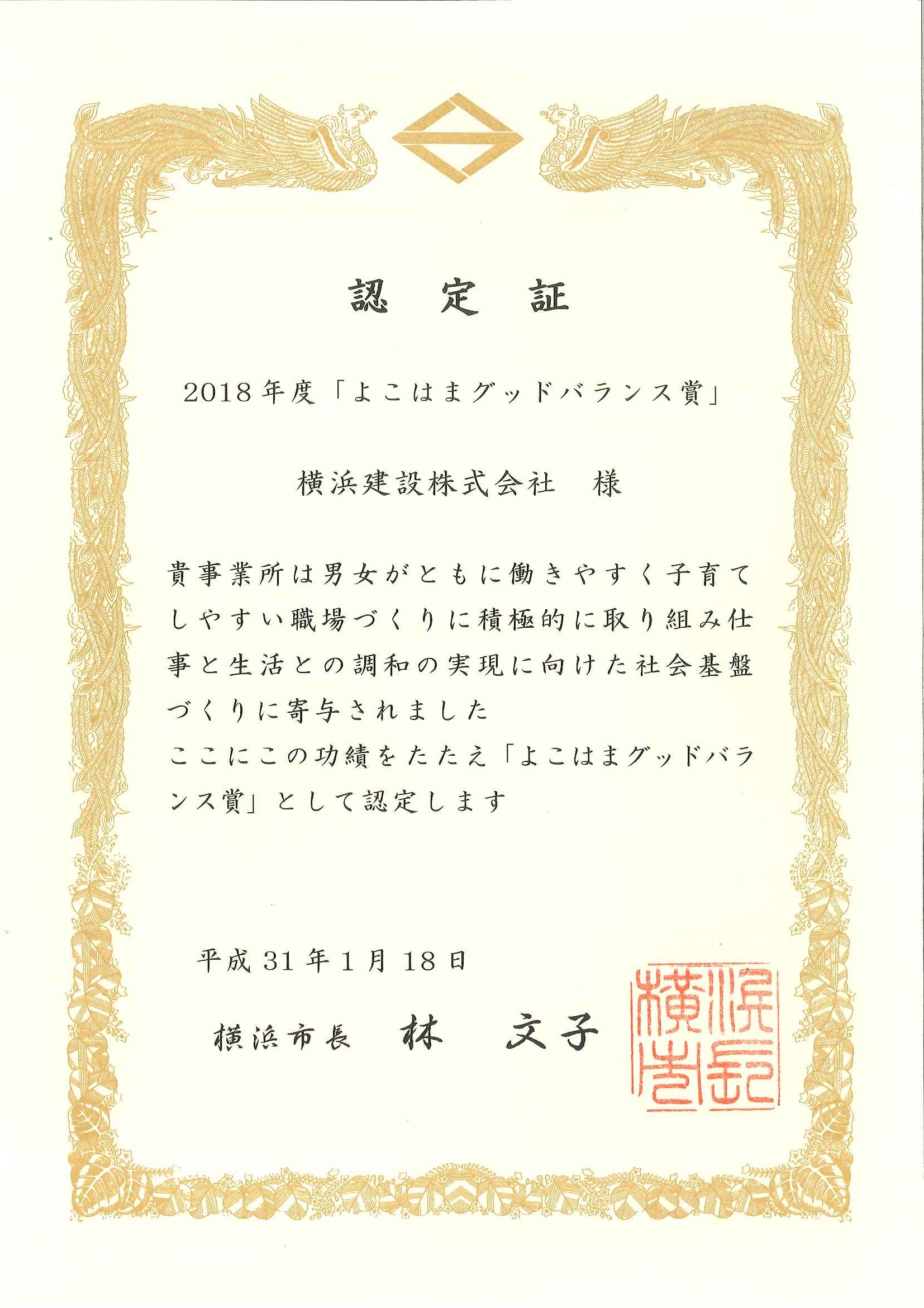2018年度も、よこはまグッドバランス賞に認定されました。 認定期間:2019.01~2020.12