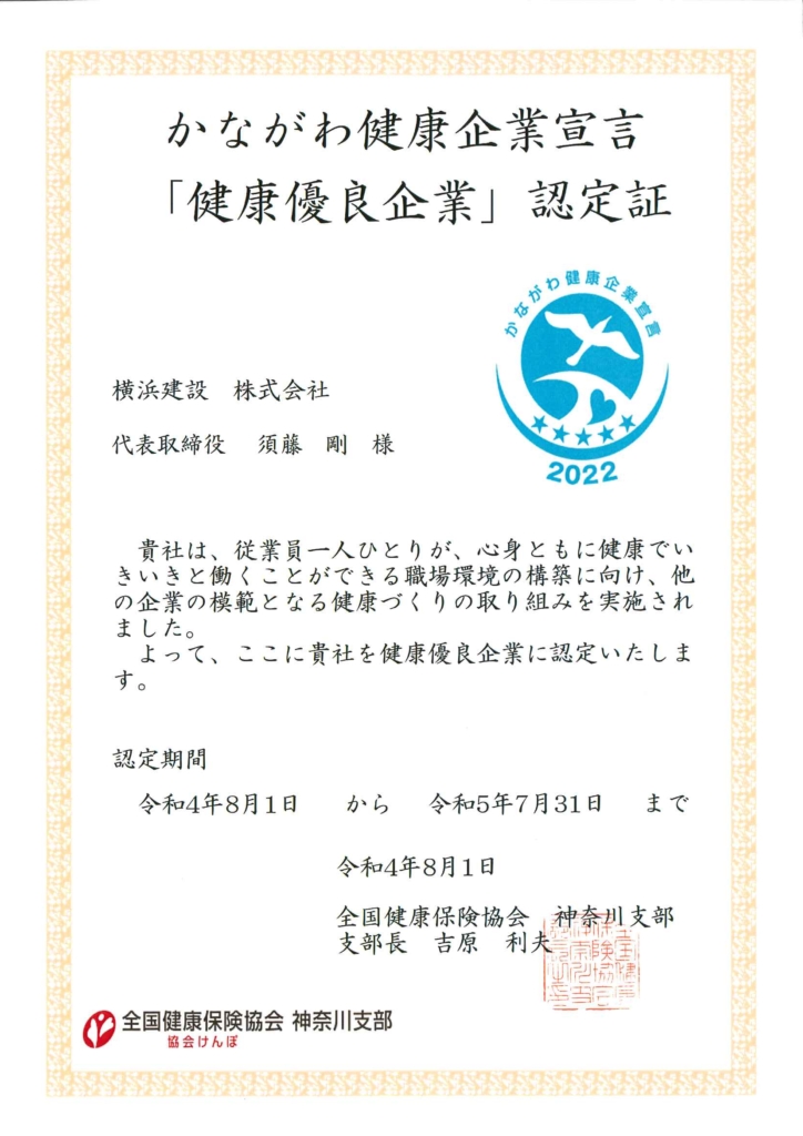 かながわ健康企業宣言「健康優良企業」最高ランク★5に継続認定されました。
