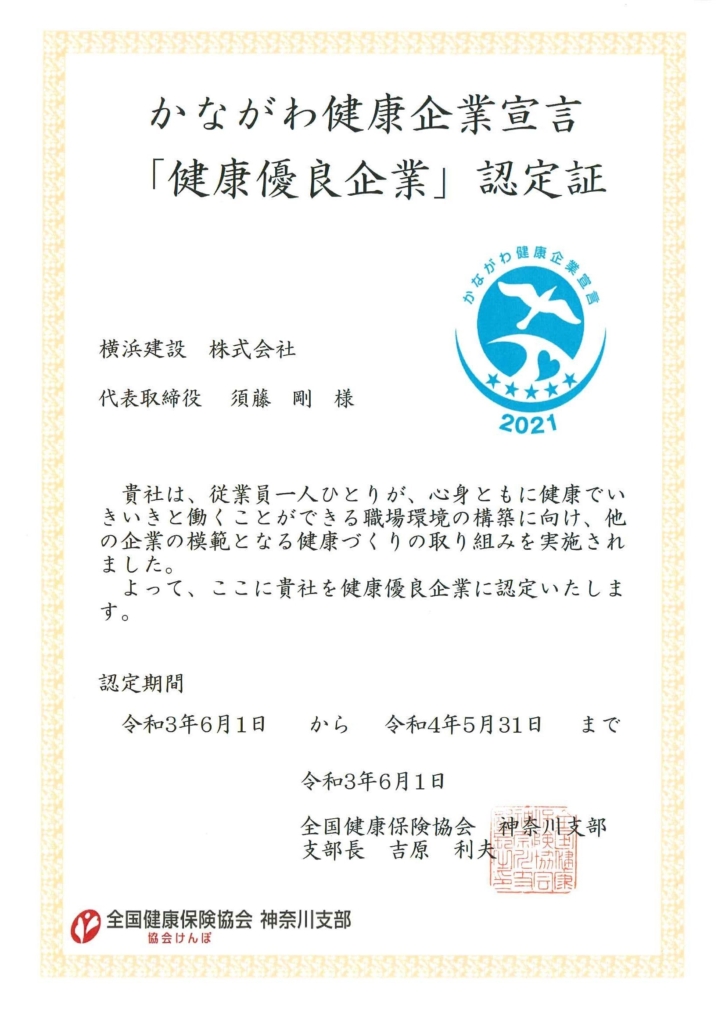 かながわ健康企業宣言「健康優良企業」最高ランク★5に認定されました。