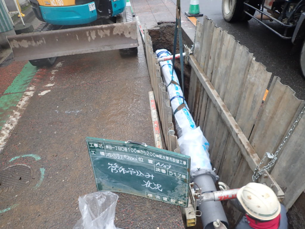岸谷一丁目口径100mmから200mm配水管布設替工事
